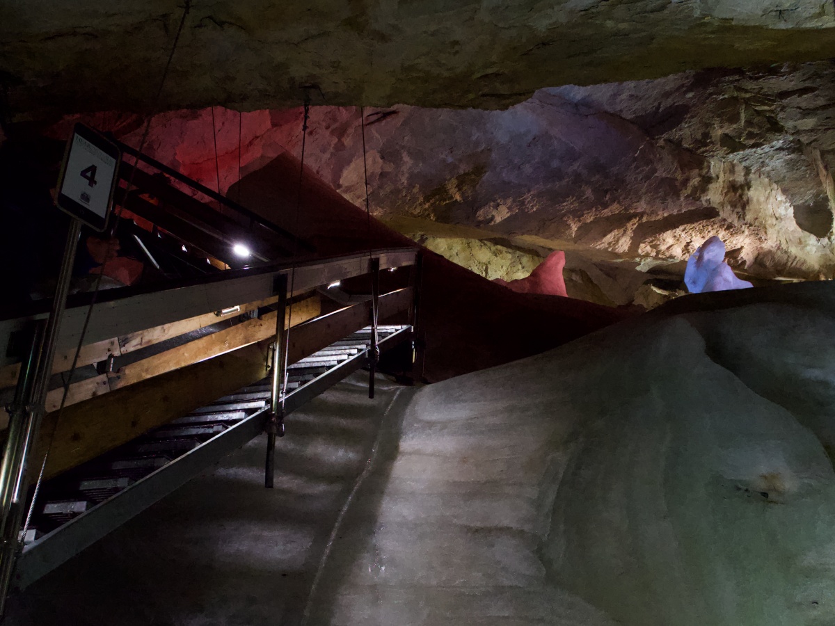 この洞窟が発見されたのは1879年のこと。20世紀になって本格的に調査が始まり、登山道が整備されることによって観光客も増え始めました。1969年にはロープウェイが出来、さらに観光客が増加。観光洞窟としては100年程度の歴史ですが、キリアンさんによるとここにある氷は500年前のものにまで遡ることができるのだそうです。
