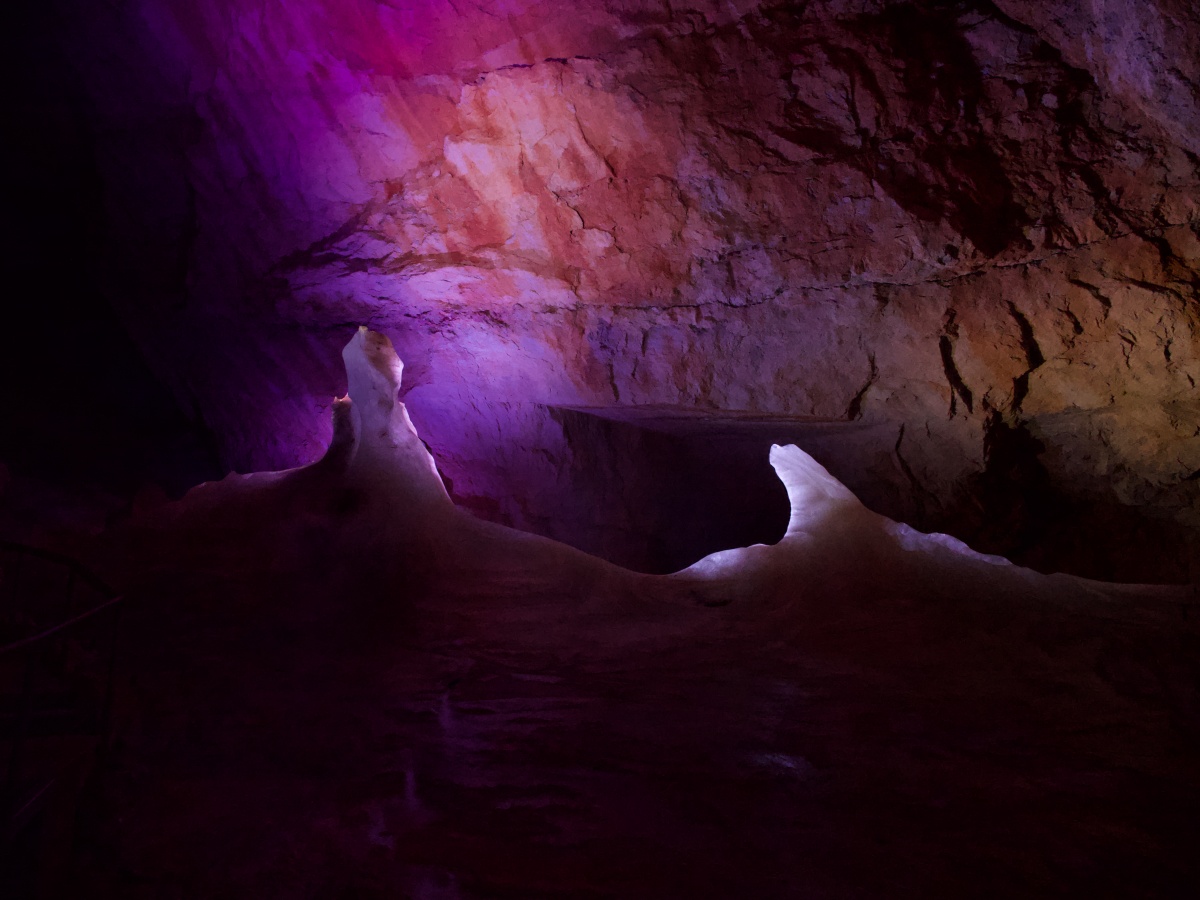 その洞窟の名前は、ドイツ語では「アイス・リーゼン・ヴェルト」、直訳すると「氷の巨人の世界」です。洞窟の長さは合計42km、幅の広い場所では30mと、氷の張った洞窟の中では世界最大級。1kmにわたって年中凍っているらしいのです。
