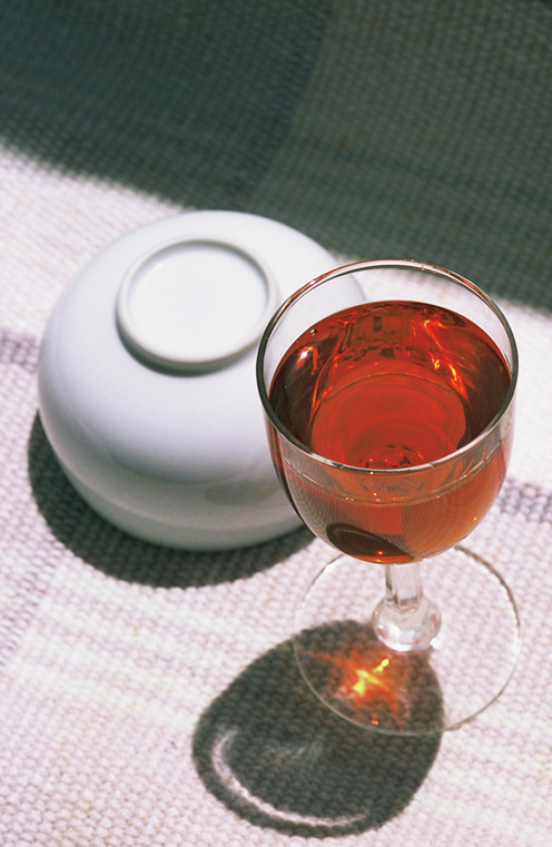 かすかに赤っぽい、手作りのリキュール。色も味も、上出来のグレナデンだ。