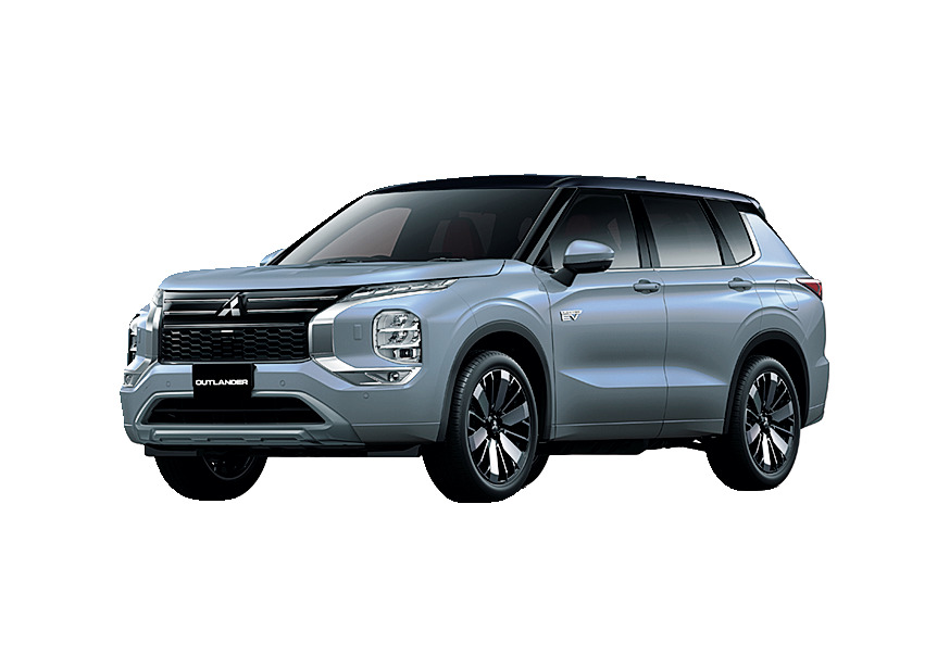 いち早くPHEVを搭載したアウトランダーは、現行型の大幅改良を経てEV航続距離が100㎞強に。足回りと4輪制御システムの改良で旋回中の安定性も高めた。コンセントは全グレードに標準装備されている。
