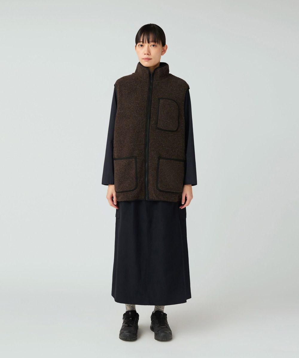 「Recycled Wool Boa」シリーズでは、ウール素材の産地・尾州で作られたリサイクルウール「RE:NEWOOL」をボアフリースの素材に採用。毛足が長くボリューム感があり、ウール特有の暖かみや上質な風合いが魅力だ。回収した衣料や未使用の糸を反毛加工したリサイクルウールを使用することで、CO2排出量や水の使用量や移動・生産エネルギーも軽減。環境にも配慮している。