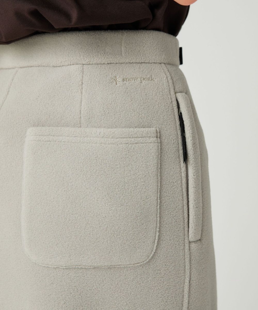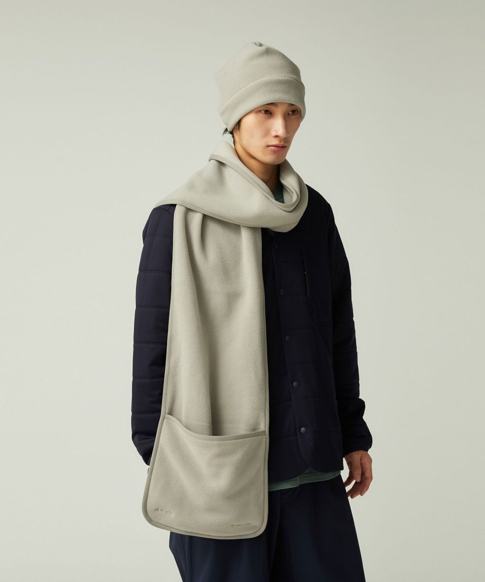 「Water-Repellent Fleece Stole」は巻く、結ぶなど様々な使い方ができる大判のフリースストール。片面にはアウトドアシーンで便利に活用できる小物が入るポケットを配置。ポケット部分にはスノーピークとポーラテック社のロゴ刺繍を施している。