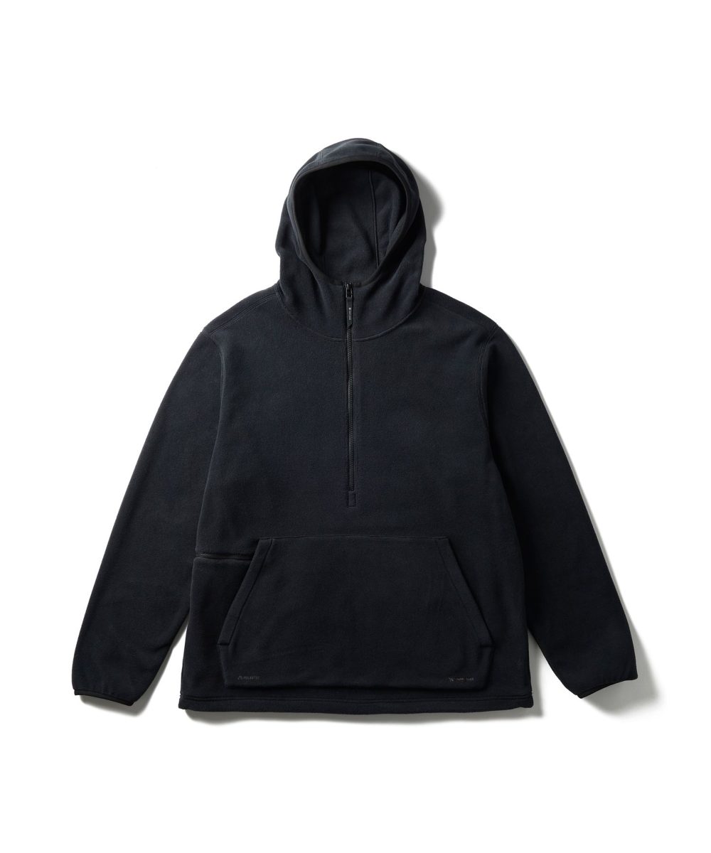こちらは「Water-Repellent Fleece Jacket」のフーディ―バージョンで、単体でもコーディネートの主役になるデザイン。前面には大容量のカンガルーポケット、右脇にはファスナーポケットを備えている。