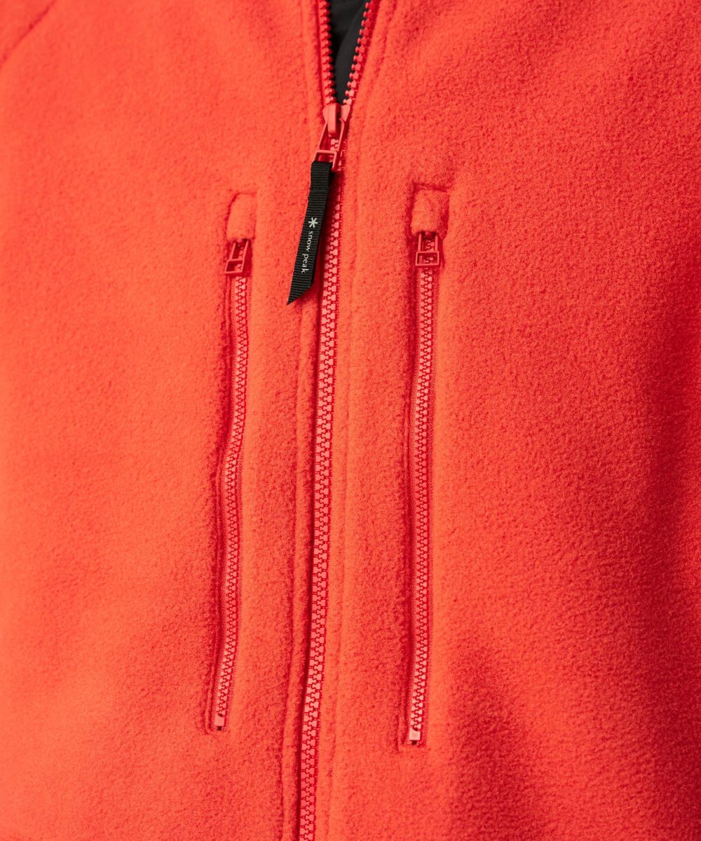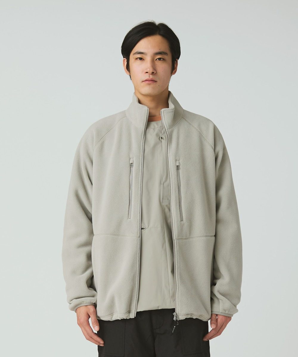 「Water-Repellent Fleece Jacket」はやや大きめのサイズ感で、ミドラーの上からも羽織りやすい設計のフリースジャケット。袖下にマチを設けることで動きやすさが向上している。