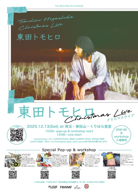 【2025.12.13(SAT)東田トモヒロ”X’mas Live&Special Pop-up&Workshop”in埼玉(くりはら食堂・東松山)】