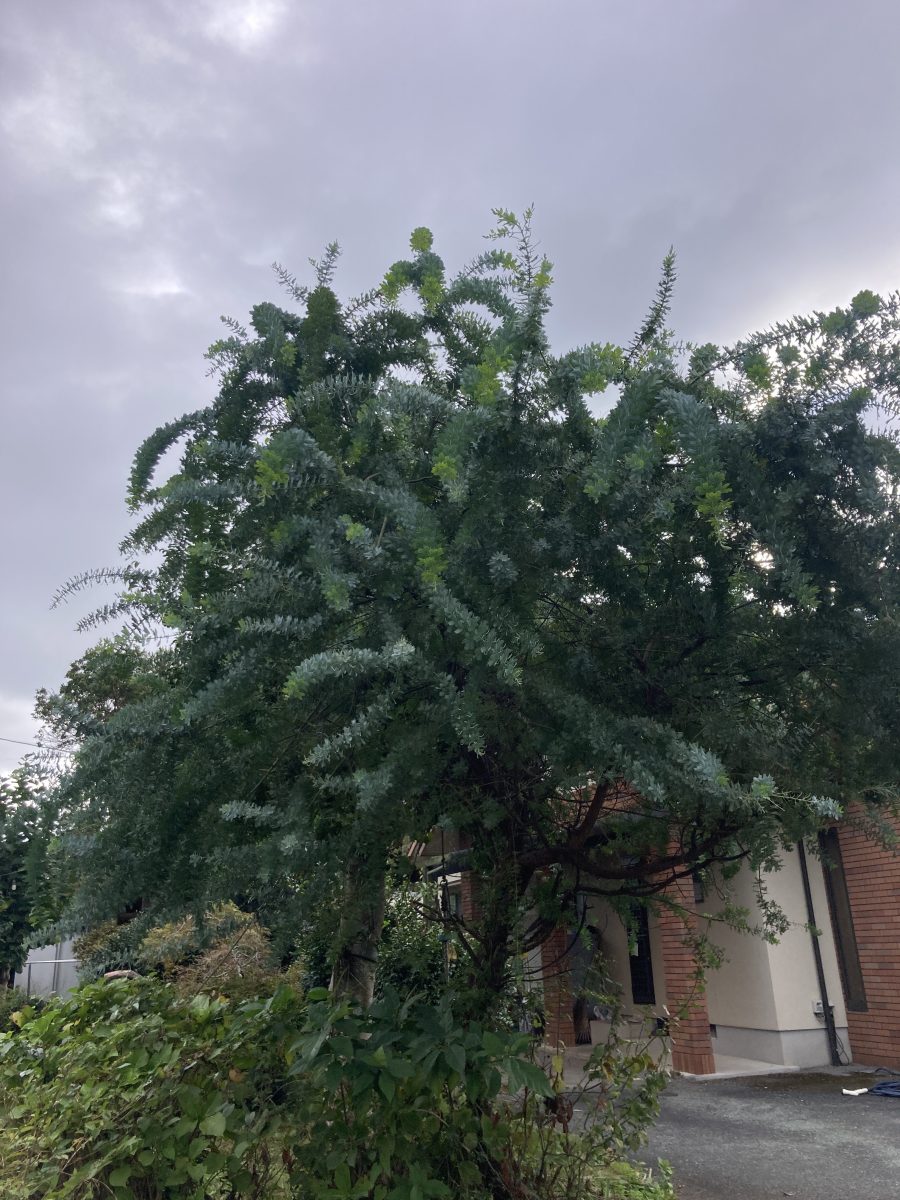 特にご紹介したいのは「ミモザ」と「ユーカリ」。ミモザは小さな苗木で買ってきたものですが、全く手を入れていないにもかかわらず、あっという間にもっこりと大きく育ってしまいました。そいつが結構な存在感でね、真夏の暑い時期になると涼しげな日陰を演出してくれます。春になると鮮やかな黄色い房状のふわふわとした花を咲かせてくれます。