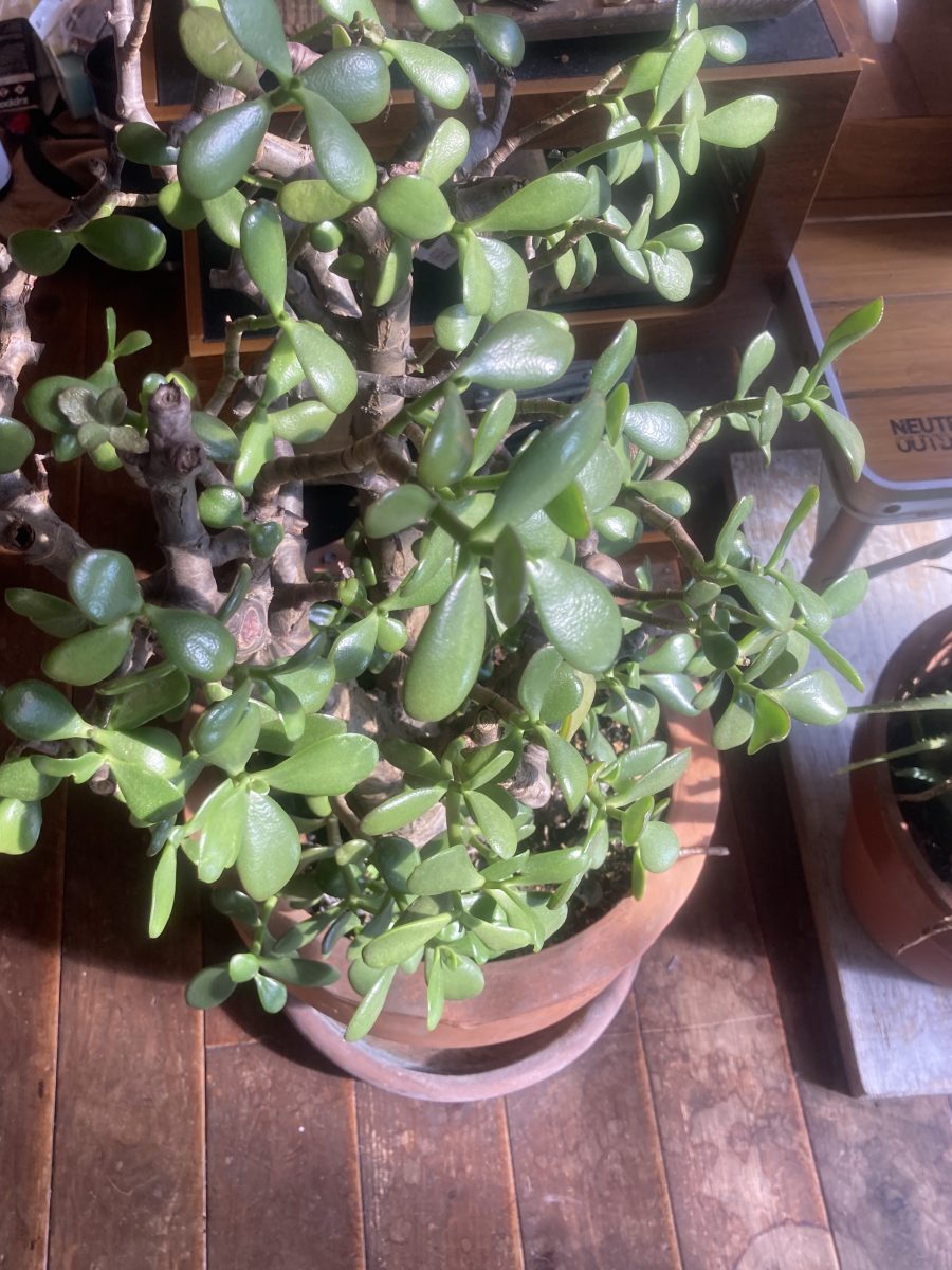 それから「金のなる木」。つい最近調べてその名を知ったものなのですが、南アフリカ原産の多肉植物の一種。おそらく母が、かつてどこからか購入してきたものでしょう。玄関の隅であまり元気がない様子でしたので、日当たりの良い僕のスタジオのほうへ移動させ、同じくしょんぼりと枯れかかっていたアロエと並びで置いてみました。