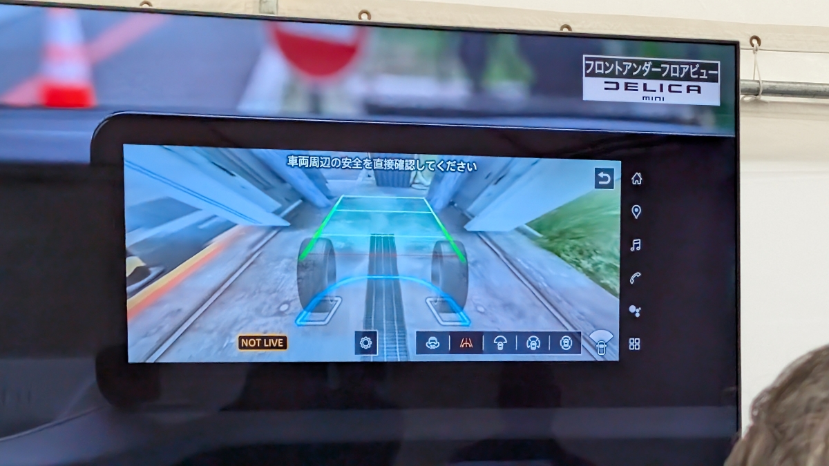 他にも3Dマルチアラウンドモニターを三菱として初採用。車両の前後左右4つのカメラで、クルマの回りを前後左右8つの視点から立体的に見られるし、車両前方フロアが透けて見えるような映像の「フロントアンダーフロアビュー」はコインパーキングや洗車機のときに超便利。
