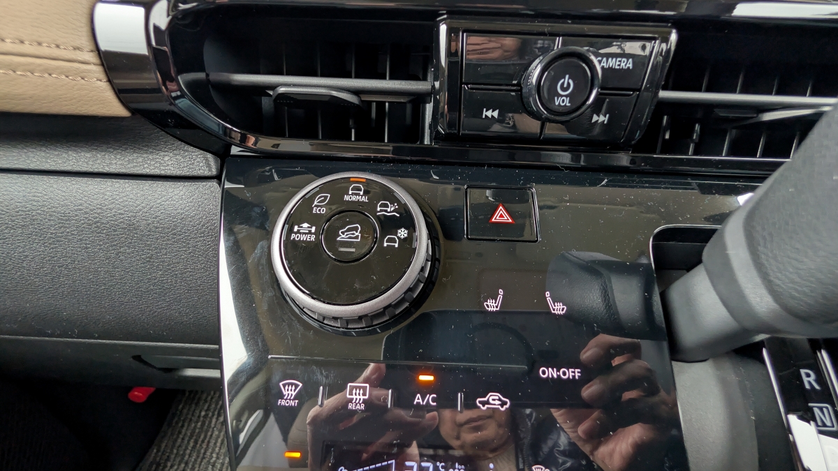 新型デリカミニにはなんと、三菱得意のあのダイヤルが装備されちゃってる。それは軽自動車“初”の5ドライブモード(POWER/ECO/NORMAL/GRAVEL/SNOW)のダイヤル。これの制御は来年1月くらいに雪道でやってみたいところですが、かなりの走破性を期待しちゃって良いでしょう。