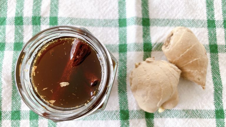 冷蔵庫で保存すれば、約1週間は美味しく飲めます。色は琥珀色で、ほんのり生姜の香りが立ちのぼります。冷めると甘さが感じにくくなるので、後から調整できるよう、炭酸水で割るときに加減しましょう。