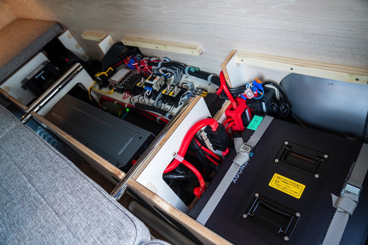 装備面では最新の58L冷蔵庫やマグネット式ポータブルウォータータップを採用するほか、電子レンジやリアスピーカーを標準で装備。電装システムはAGM80Ahのサブバッテリーに10Aバッテリーチャージャーを搭載するほか、照明もシーリングボードに間接照明も備わるなど充実。さらに、クーラーパッケージプラスとクーラーパッケージプラス2とパッケージモデルも2タイプラインナップしており、DC12Vクーラーにリチウムイオンバサブッテリー、インバーター、ポータブル電源口、断熱加工といった、さらに旅が快適になるようなモデルも選べるようになっています。