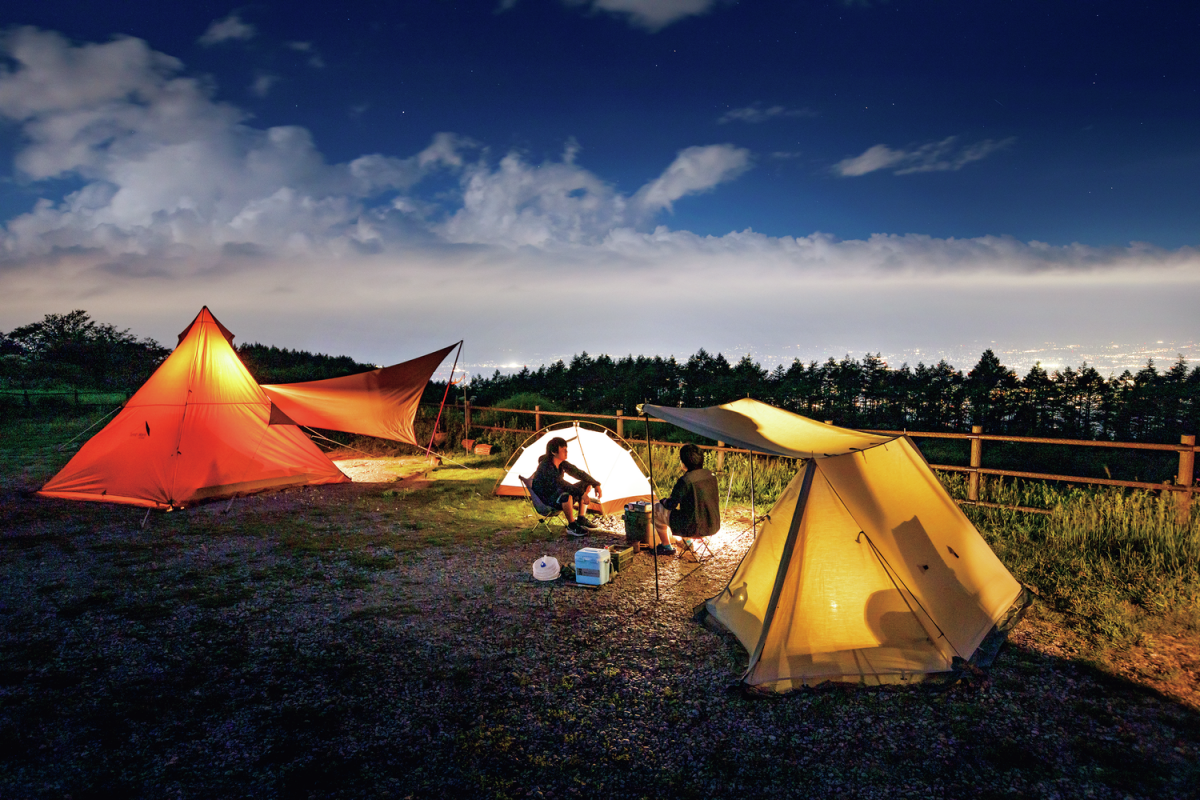 蓼科連峰や八ヶ岳の眺望を楽しむことができる。標高約900mの高台から見下ろす佐久平の夜景も素晴らしく、夜には満天の星空が広がるなど、まさに天空キャンプが楽しめる。都心から車で約1時間30分というアクセスも◎。