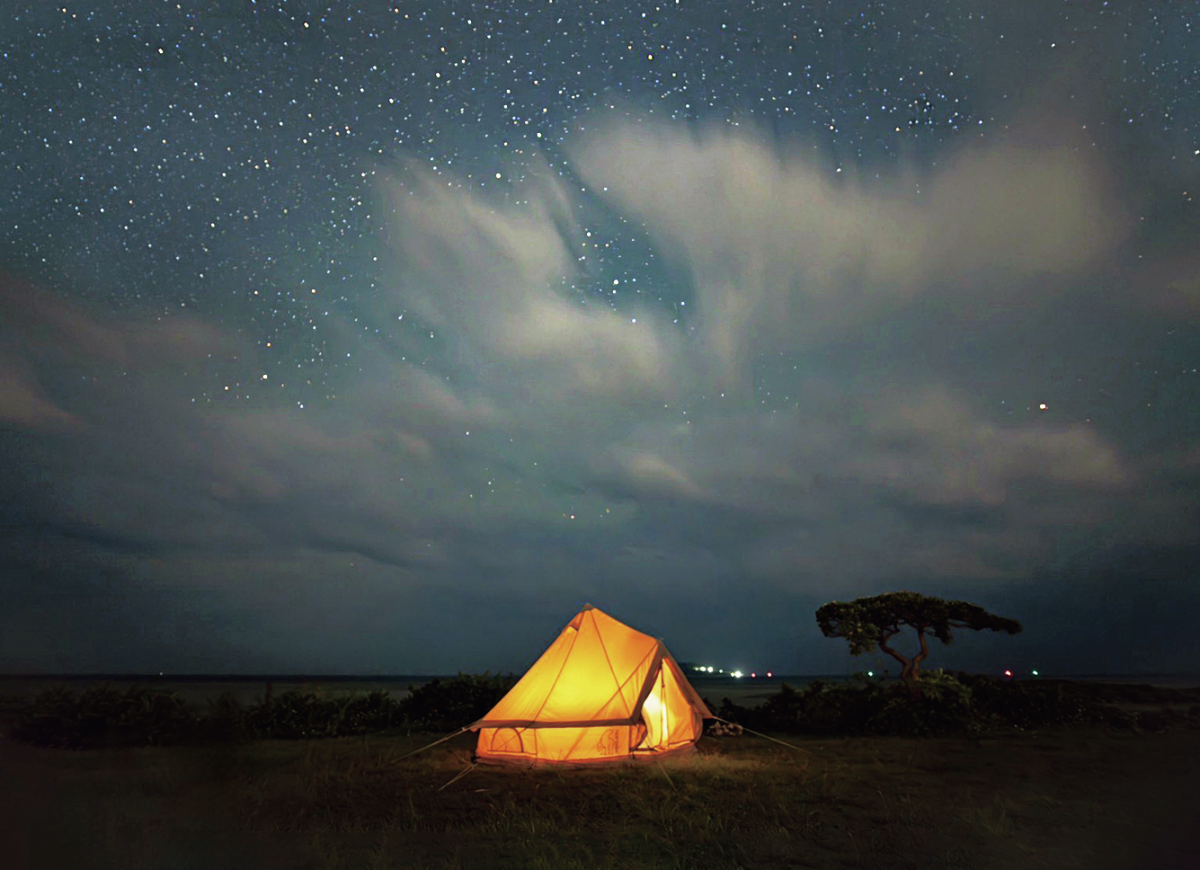 周囲に人工の灯りがなく、晴れれば満天の星。流星群にあわせて星見キャンプをしよう。