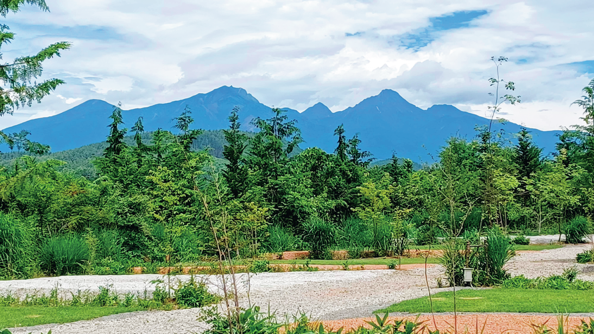 南アルプスの西側、鹿嶺高原に立地。場内の展望台からは、南アルプスの仙丈ケ岳と甲斐駒ケ岳、振り返れば中央アルプス・北アルプスを一望! 1,800mの高原ならではの大パノラマが広がる。