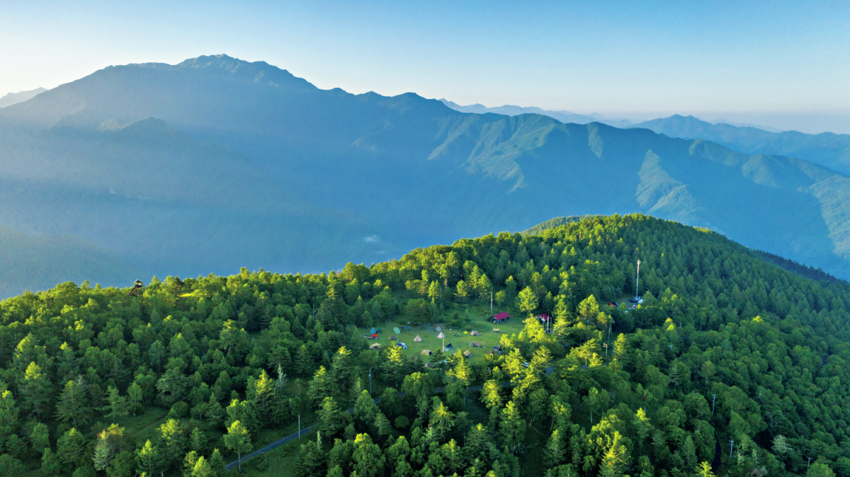 標高1,400m、四国カルスト県立自然公園内にあるキャンプ場。そこからの眺めは360度広がるパノラマで、圧倒的なカルスト地形の大自然を楽しむことができる。姫鶴平の頂からは石鎚山をはじめ四国山地が一望でき、夜は満天の星空が降り注ぐ。