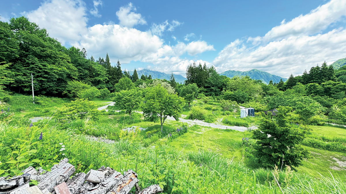 夫婦で鬼無里の山の上の土地を整備し、2022年10月に開業。周囲には民家等がなく、聞こえるのは自然の音だけ。場内からは戸隠連峰も望める。テントサイトは区画、フリー、ドッグランサイトなど。オーナー夫妻が常駐しているので、女性ソロも安心して利用できる。ちなみに雪中キャンプもOK!