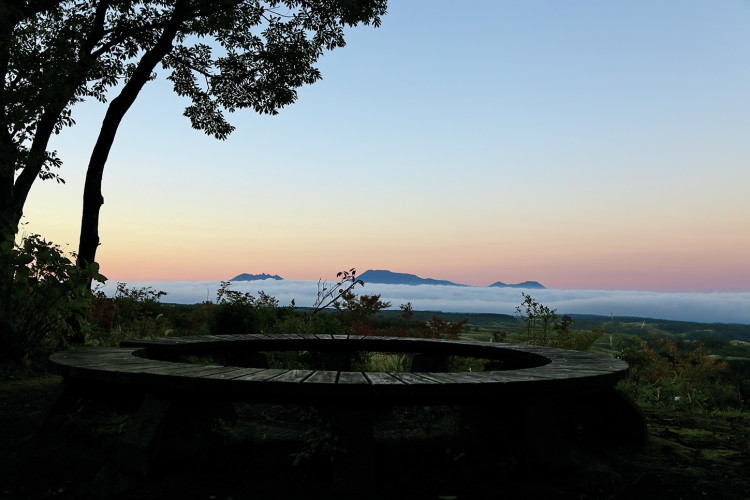 標高900mの大谷山高原に位置し、雄大な阿蘇五岳の山々を一望できる広大なキャンプ場。自然豊かな阿蘇の景色はもちろん、山々に沈む夕陽や、運が良ければ出会える朝方の雲海はまさに絶景だ。