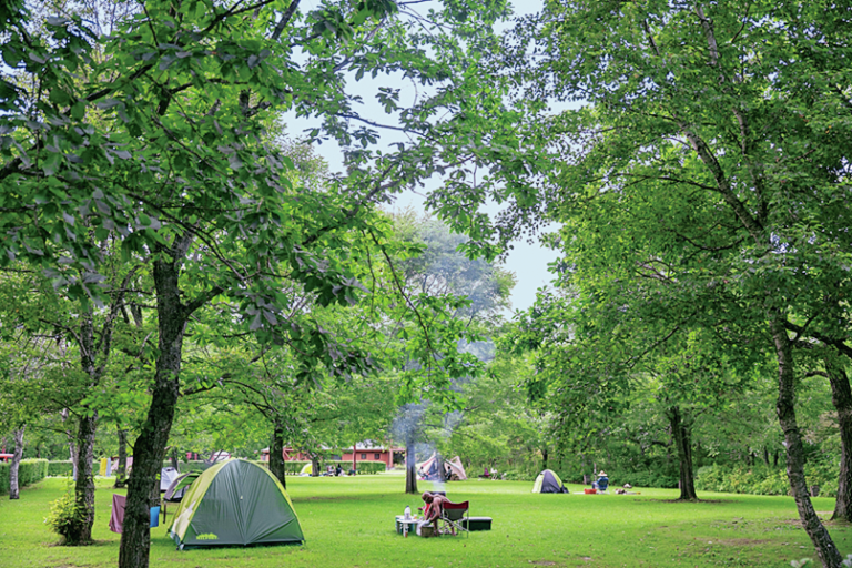 約23haの敷地にアスレチックや広大な芝生が広がる、本別公園内のキャンプ場。地形を活かした遊歩道も気持ちよく、サイトの近くには本別川も流れている。「白樺の林なんかもまさに北海道。有料でバンガローもあるのでキャンプ初心者にも良さそう!」