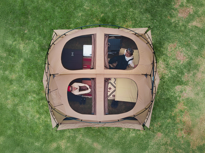 薪ストーブを入れてぬくぬく過ごしたい、お座敷コタツでダラダラしたい、天窓から星を眺めたい、フェスでちょっとドヤ顔したい──。「ガシーンドーム」は、そんな“やってみたい”をこれでもかと詰め込んだ一張りだとDODの企画担当者は話す。