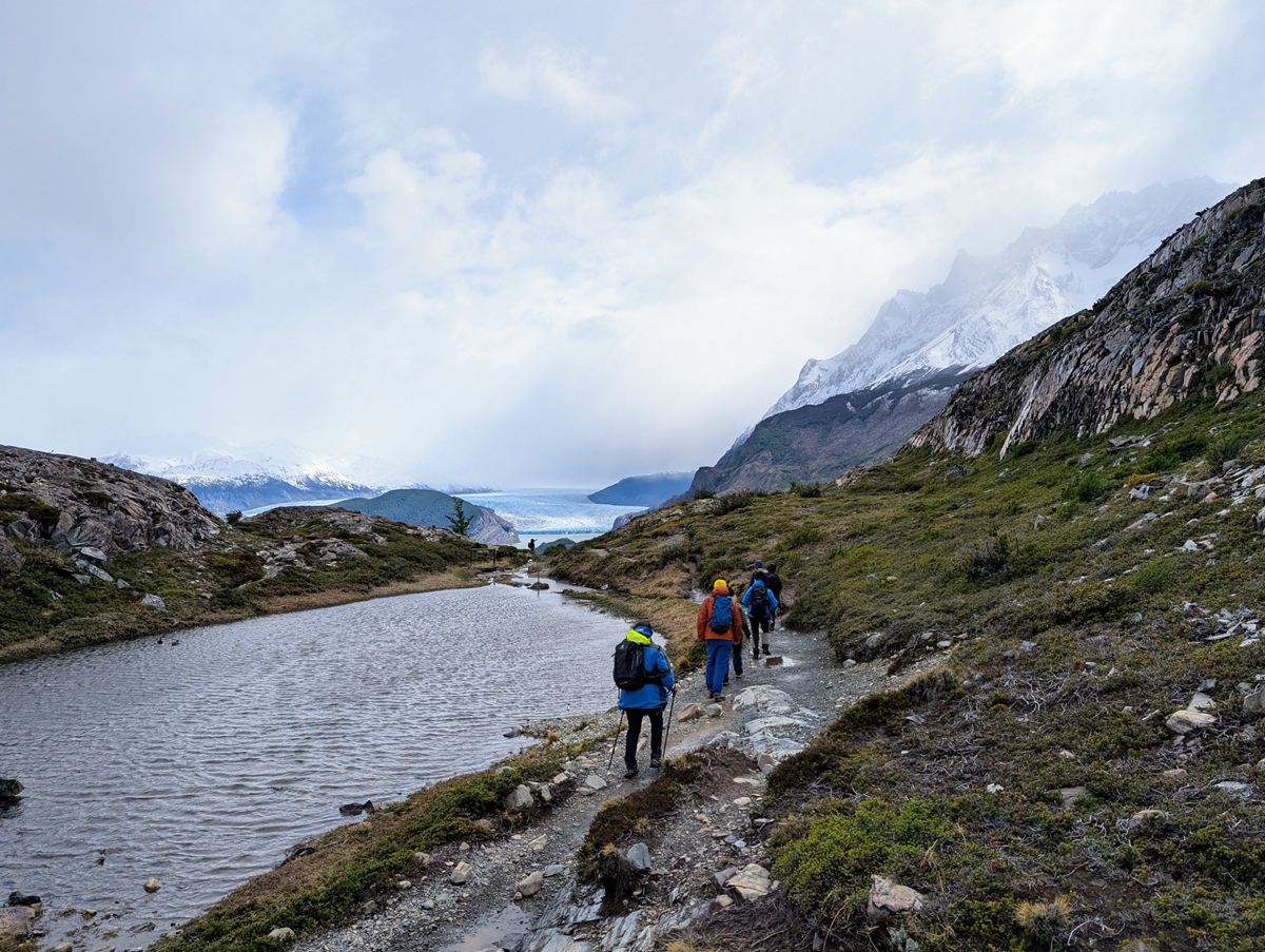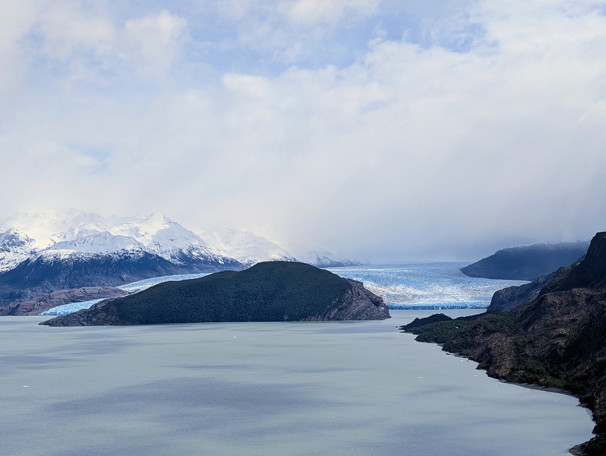 そこから今度は小舟に乗って地図左上の白い部分、「グレイ氷河(Glacier Grey)」近くで上陸して、そこから氷河を眺めるという予定です。