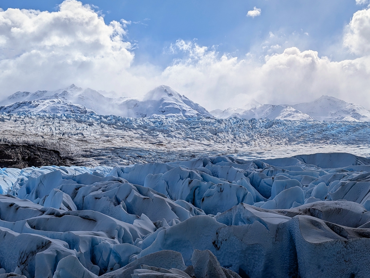 「過酷な自然」とも言えますが、だからこそ穏やかな気候の場所とは違う絶景が見られます。その一つが巨大な「氷河」! 以前スイスで「オレっち、アレッチ」ことデイヴィッド師匠に連れられてその大迫力を目の当たりにして以来、氷河の魅力に取りつかれています。