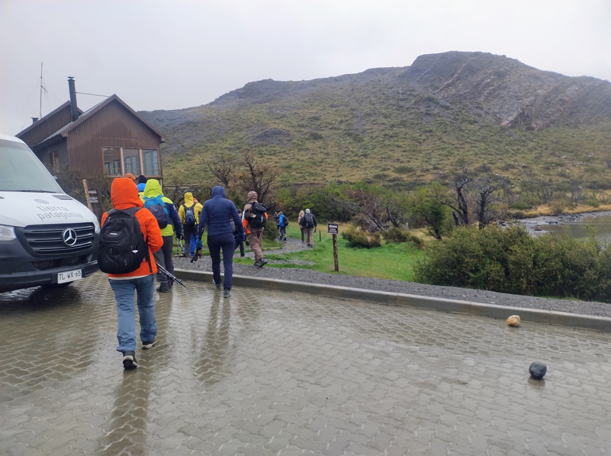 プエルトナタレスの街からツアーバスに1時間半ほど乗るのですが、最初は曇っていたと思ったらいつしか本格的な雨に。