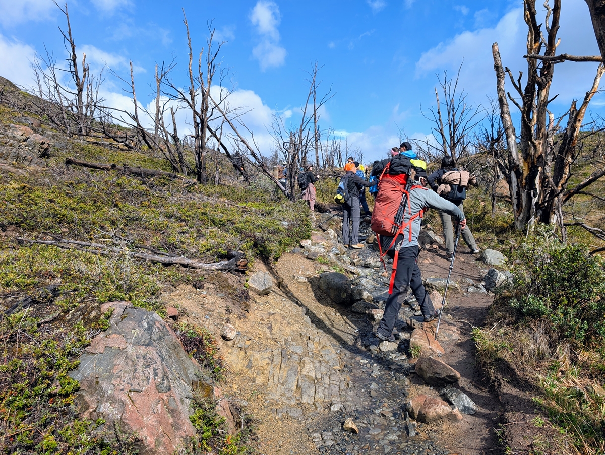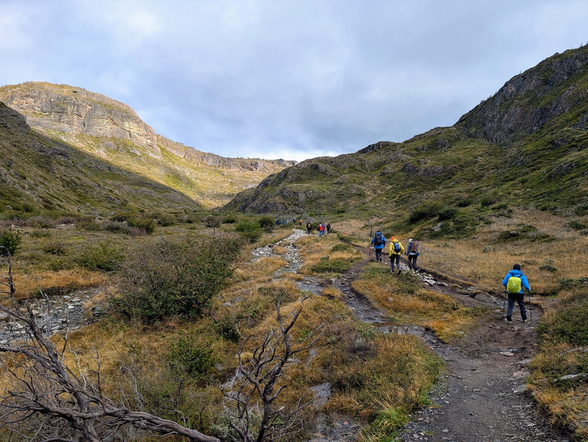 このあたりもかつて氷河に削られたU字谷なのかなとガイドに聞こうとしたのですが……結局聞きそびれました。言い訳になるのですが20人の参加者と3人のガイドの中でスペイン語を話せない人は3人しかいません。つまりトレッキング中の会話はスペイン語が基本。で、「英語で突然話しかけて邪魔しちゃ悪いな。後で尋ねればいいか」と思って、結局聞き忘れました。涙