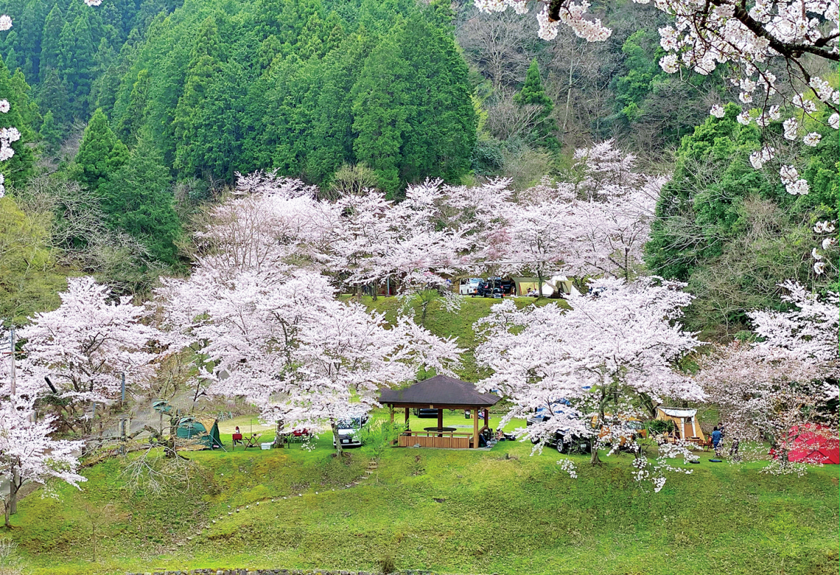 場内にはソメイヨシノが植えられていて、ペットサイトと区画オートサイトならどこからでもお花見を楽しめる。敷地内には宿泊棟やレストランがあるほか、3月~11月は手ぶらキャンププランも実施しているのでビギナーも安心だ。