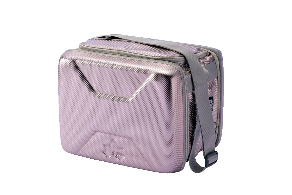 マイ飲料を持ち歩ける、携帯式クーラー。缶は3層、瓶は5層の断熱材構造。瓶は厚さ1㎝の断熱材が衝撃を吸収し、ボトルの破損も防ぐ。