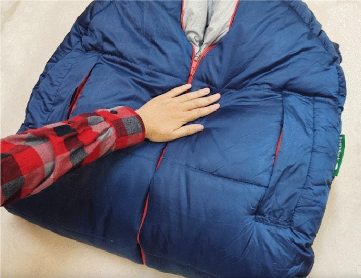腕を外に出せるファスナーが付いており、上半身はしっかりあたためたままスマホ操作ができる。寒い夜でも、体を冷やさずにニュースチェックや動画視聴を楽しめる。