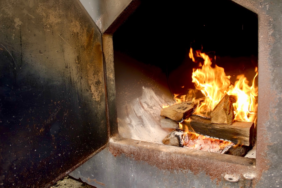 5.薪を燃やし、スモーカーグリルの予熱温度を250〜275℉(約120〜135℃)に設定しておく