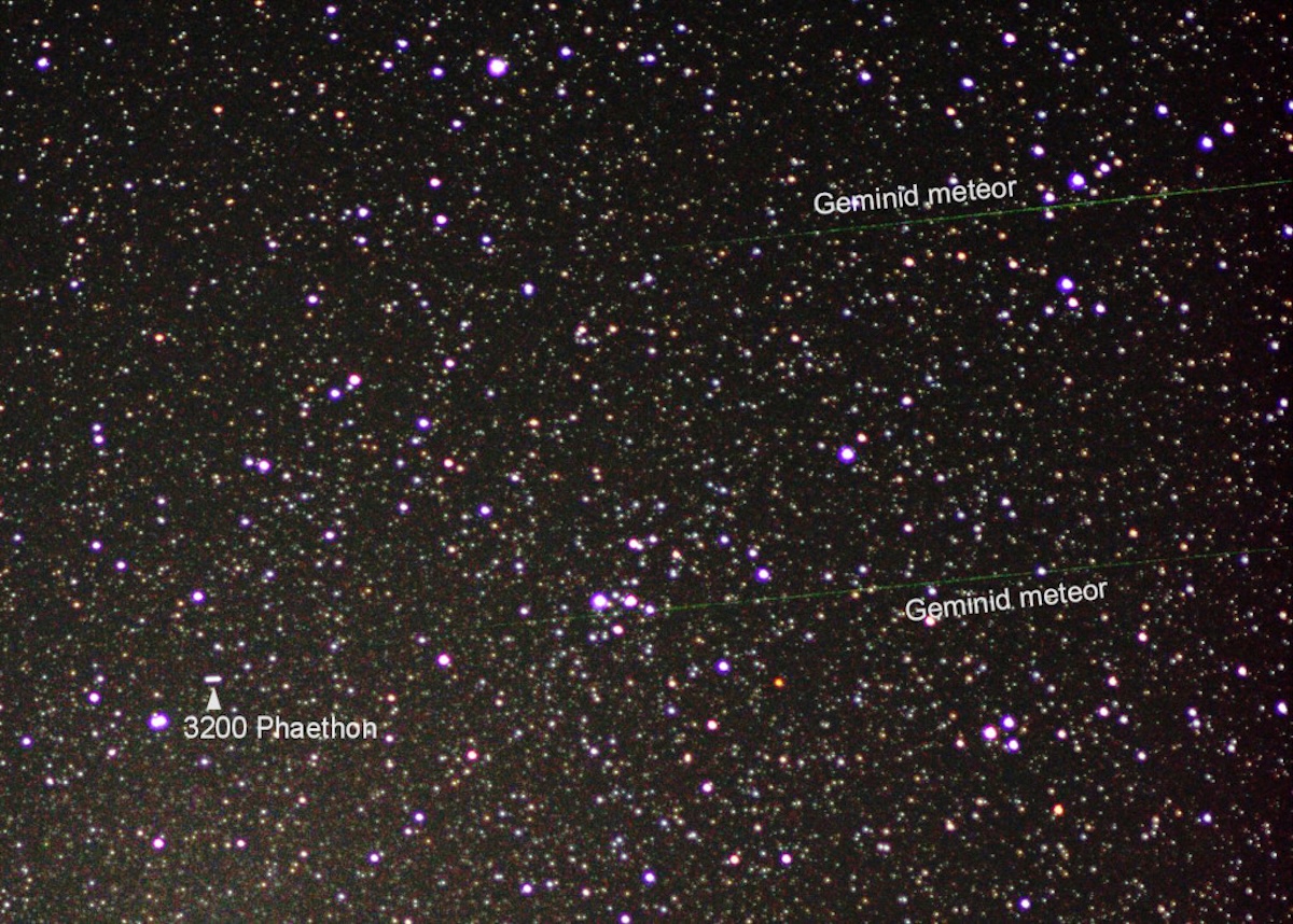 ふたご座流星群のユニークなところは、流星の元になる天体が彗星ではなく小惑星であることです。ペルセウス流星群の母となる彗星はスイフト・タットル彗星、オリオン座流星群の母はハレー彗星。流星群は、彗星が地球軌道を横切るときに残していったチリが材料になっています。