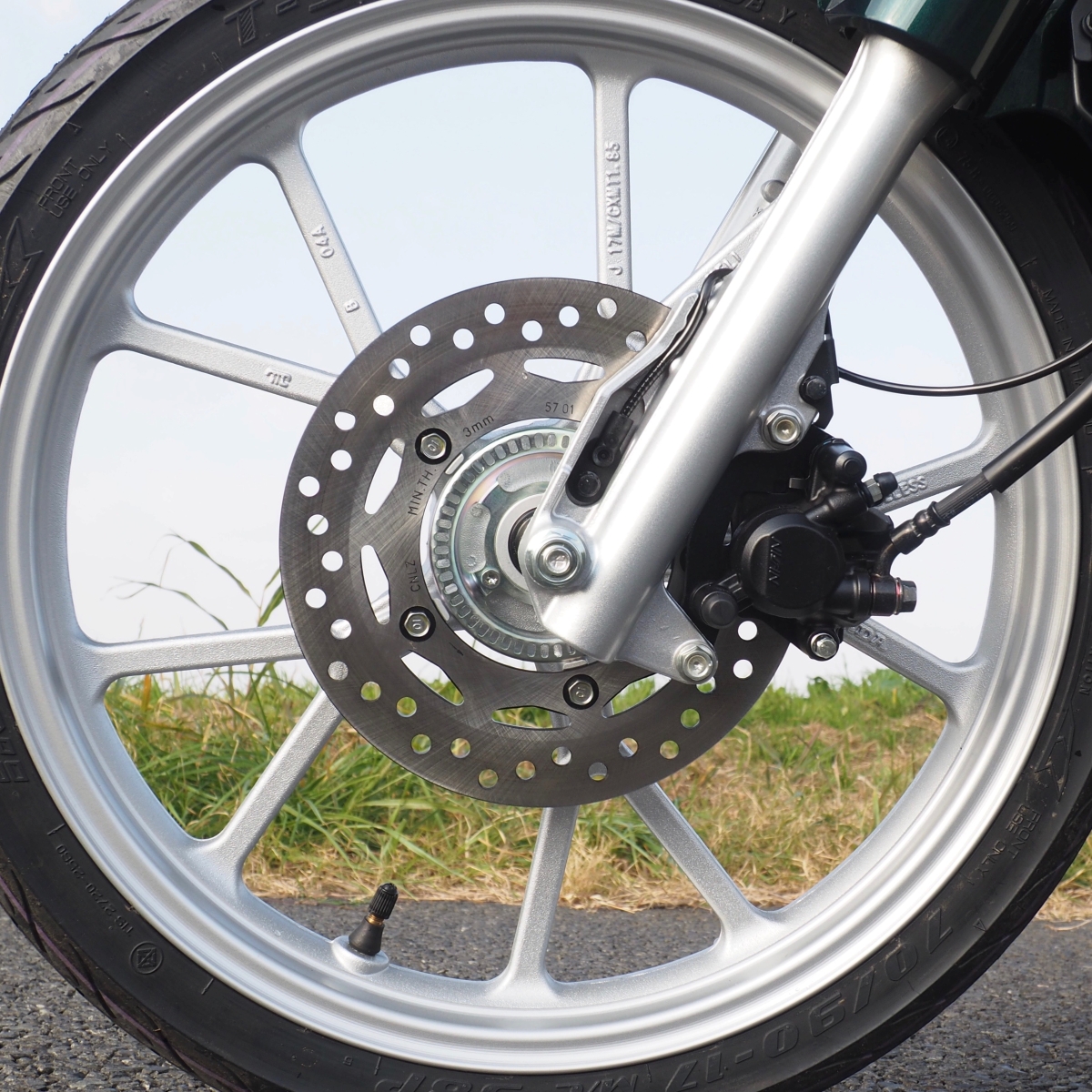 ABS付きのフロント・ディスクブレーキはタッチのフィーリングも効きも良く、市街地でも安心して走行していられる。