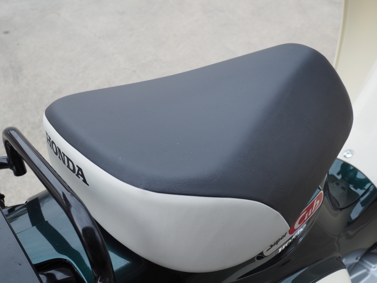 余裕があるエンジンのおかげで上り坂にさしかかってもギアを落とすことなく、トップギアの4速で走り切ることができるし、走りが安定している。わがスーパーカブ50の79kgに対して22kg重い101kgの車体はどっしりとした乗り心地だし、張りを感じるシートのクッション性も良好で、長時間乗り続けても疲れにくい。