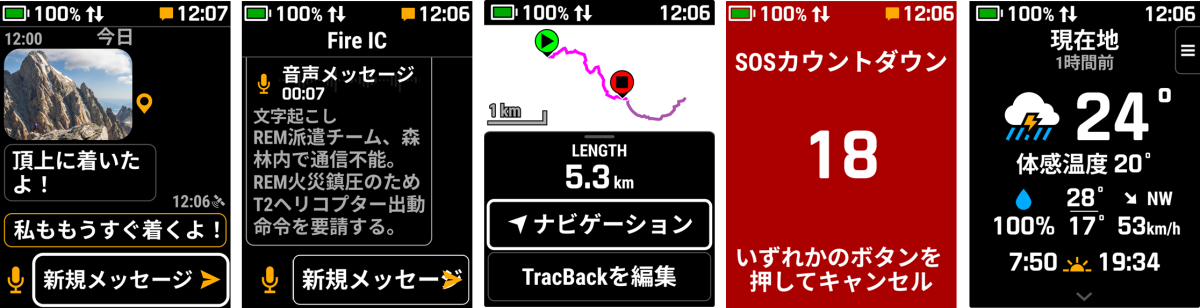 また緊急時には、24時間365日対応の「Garmin応答センター」へ、位置情報とともにSOSメッセージを送信できる。SOSはボタンひとつで発信でき、誤操作を防ぐ保護キャップ付き。SOS要請後のやり取りが日本語に対応している点も心強い。