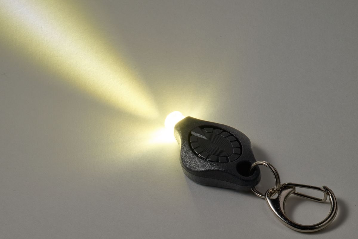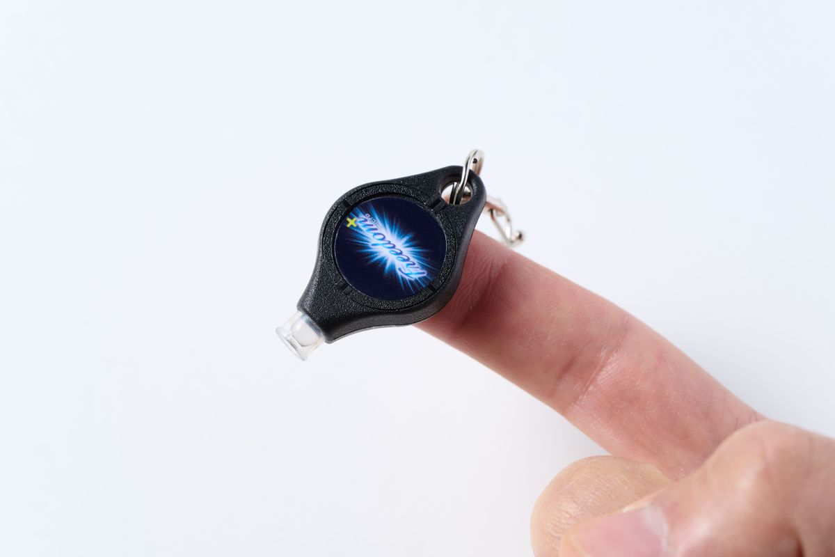 小さいけれど、点灯モードは充実している。ボタンを長押しすると、点灯(暗い→明るい)、点滅(ゆっくり→速い)、SOSの順に切り替わり、好みのタイミングで指を離すとそのモードが継続する。自転車のライトが電池切れしたときは、予備ライトとして点滅モードを使えば、道を照らすことはできなくても、最小限の電池消費で車に気づいてもらえる。街灯のない夜道を歩くときも点滅させておけば安心だ。ボタンを7、8回押すと「モールス信号モード」になり、押すごとに点灯する。たとえモールス信号を知らなくても、周囲に自分の存在を知らせることができる。いつも持ち歩くカギや財布に装着しておけば心強い。