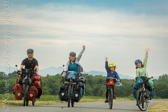 2010年、ふたりの故郷スイスを出発し、ニュージーランドを目指して自転車の旅に出ました。それ以来、私たちは国境や地平線を越え、自然と調和しながら遊牧民のような生活を送っています。旅の途中で出産も経験しました。長女のナイラは2013年、次女のフィビーは2017年生まれですが、家族4人で旅を続けています。山々や賑やかな市井のマーケット、静寂や嵐の中をりぬけ、2025年現在、自転車での総走行距離は10万kmを超えました。