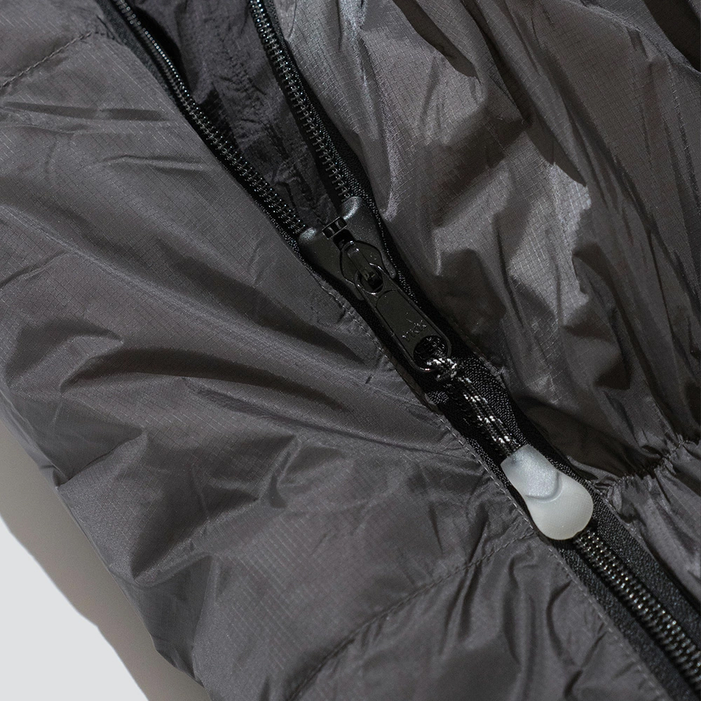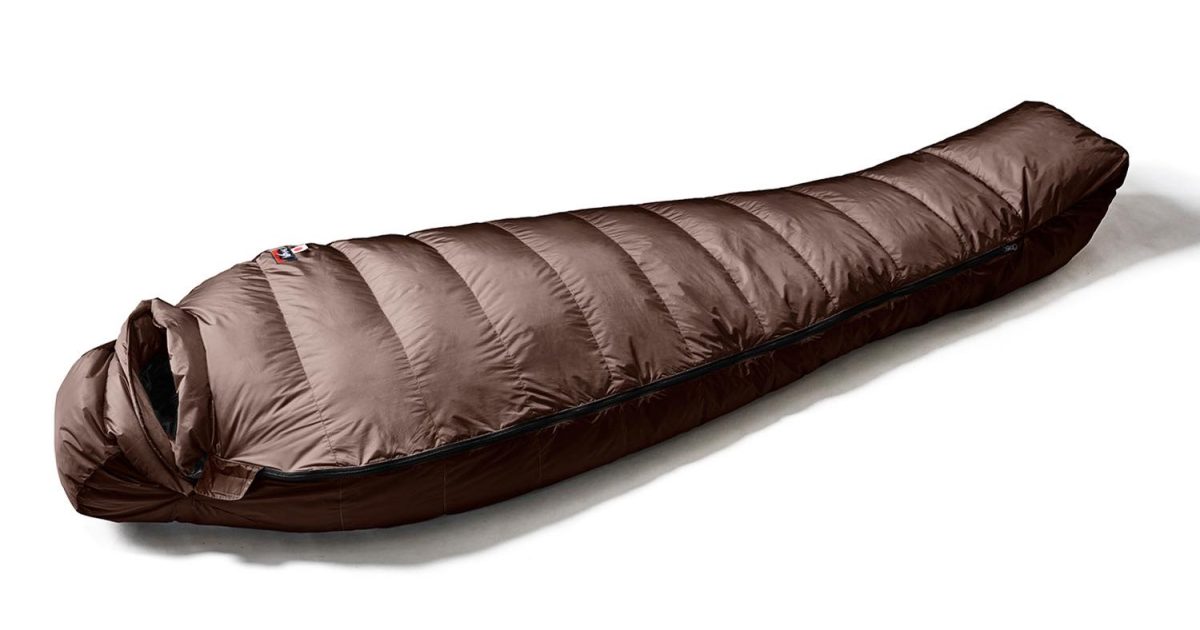 最高品質の800FP(フィルパワー)ホワイトダックダウンを90%以上封入した寝袋。保温性、防水性、透湿性を併せ持つ生地を使用している。(画像はダウン量600gモデル)