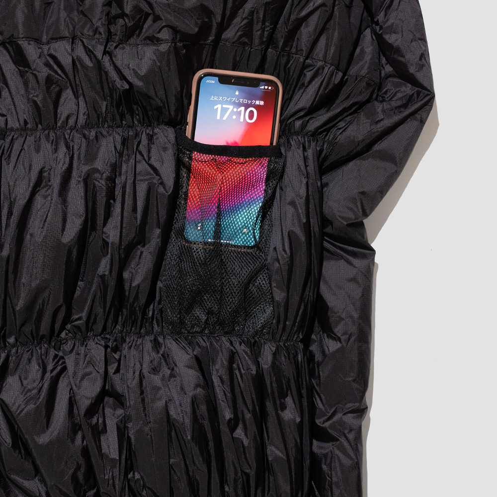 20D(デニール)のリップストップナイロンを採用しているため、引き裂き強度も高い。ストレッチ縫製とボックスキルト構造で仕上げられていて、耐久性だけでなく伸縮による快適性と保温性能を高レベルで実現。