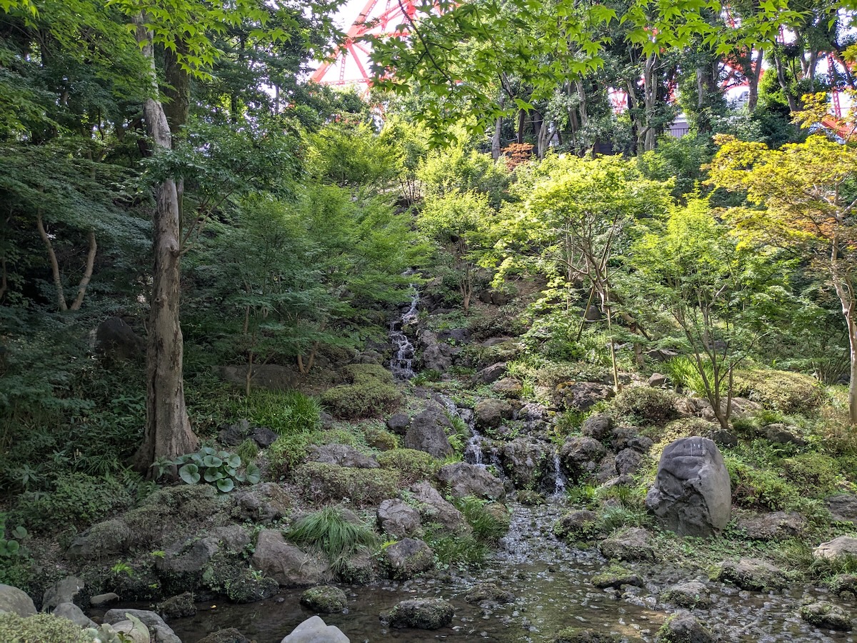 東京タワーのすぐ隣には、芝公園19号地があります。園内に歩を進め、もみじ谷に向かいました。
