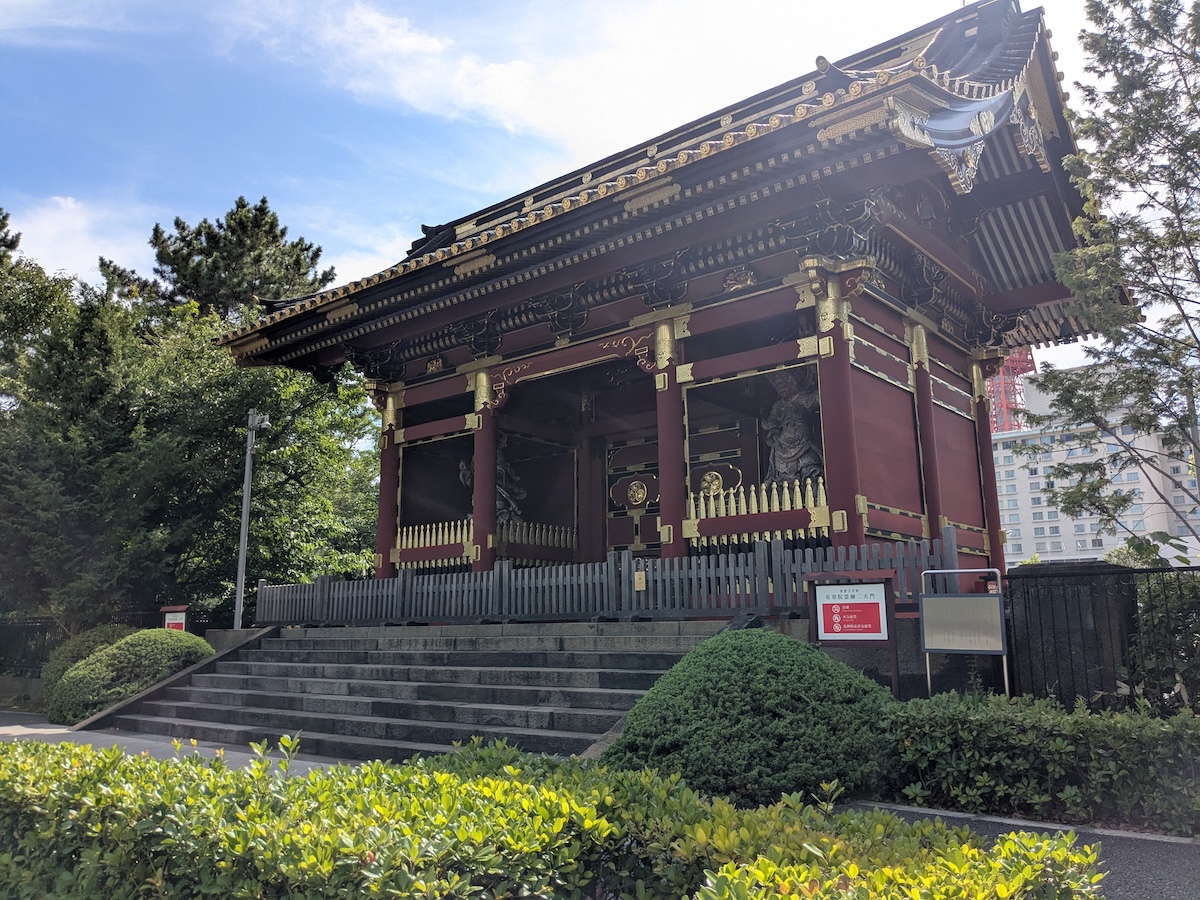 こちらは、第7代将軍・徳川家継の霊廟として設けられた、有章院霊廟二天門(ゆうしょういんれいびょうにてんもん)です。霊廟の造営は1717年(翌享保2年)。台徳院霊廟と同じく、1930年(昭和5年)に国宝(重用文化財)に指定されました。1945年、太平洋戦争の空襲で大部分の建物が焼失。家継の墓所も、増上寺安国殿裏の徳川家墓所に墓塔が建てられているそうです。