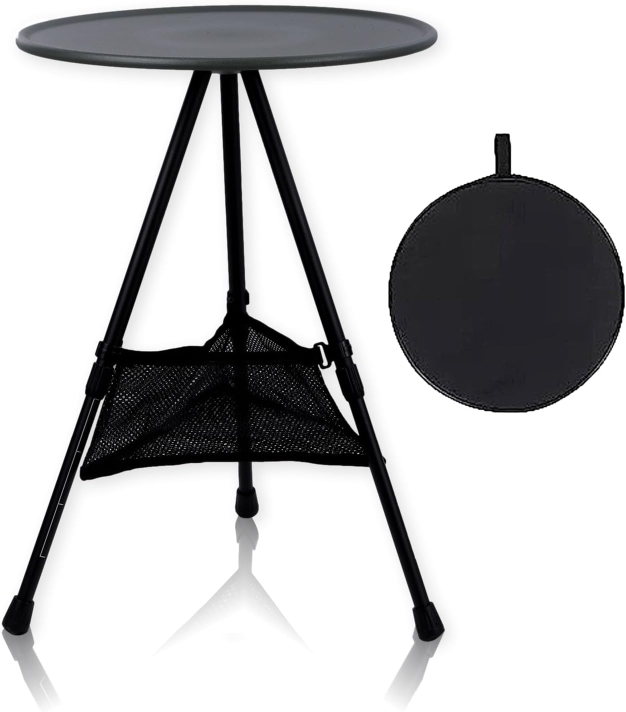 天板サイズ直径約38cm、高さ約32cm~52cmに調節可能な円形タイプの三脚テーブルです。ABS樹脂とアルミ合金を組み合わせており、850gと軽量なのが魅力。飲み物やランタン、スマホなどを置くサイドテーブルとして使いやすいモデルです。