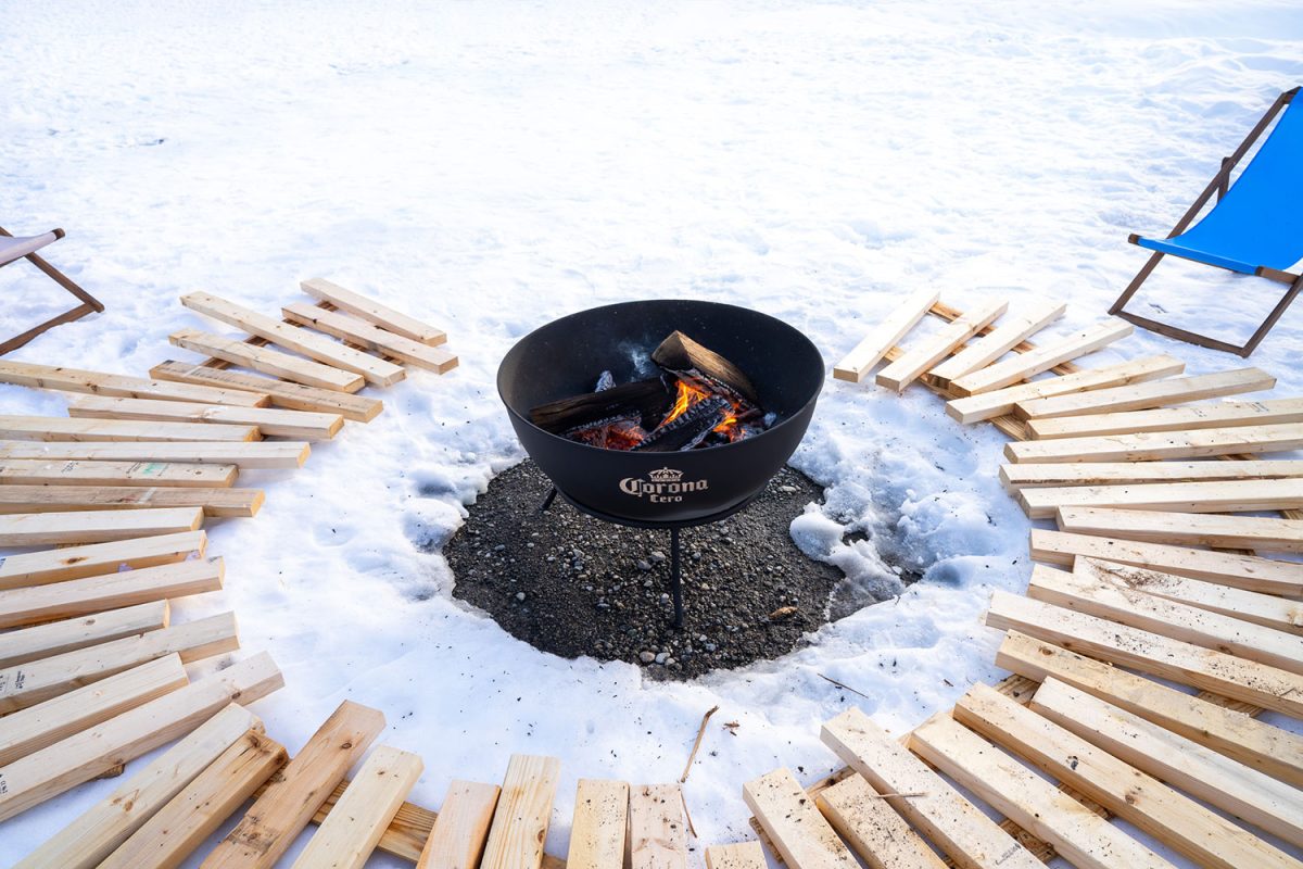 野沢温泉村スキー場の日影ゲレンデに、期間限定の焚き火バーが出現。スキーやスノーボードの合間にノンアルコールの「コロナ セロ」、アルコールありの「コロナ エキストラ」を楽しむことができる。このほか、「コロナ クラフトジントップ」、「コロナ クラフトシャンディ」、「ホットコーヒー」など、ドリンクの種類は豊富。