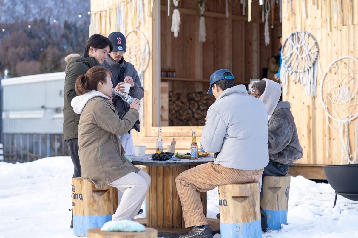 飲む人も飲まない人も、食事をしたい人も焚き火に温まりたい人も、みんなが楽しめる場所だ。