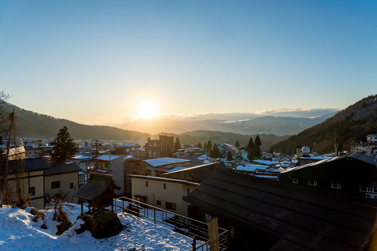 WINTER ESCAPE | Corona Extra雪山や温泉街で、コロナビール片手にリラックスしたひとときを過ごす。野沢温泉村の絶景を眺めながら。村内には写真映えする絶景ポイントが多数ある。