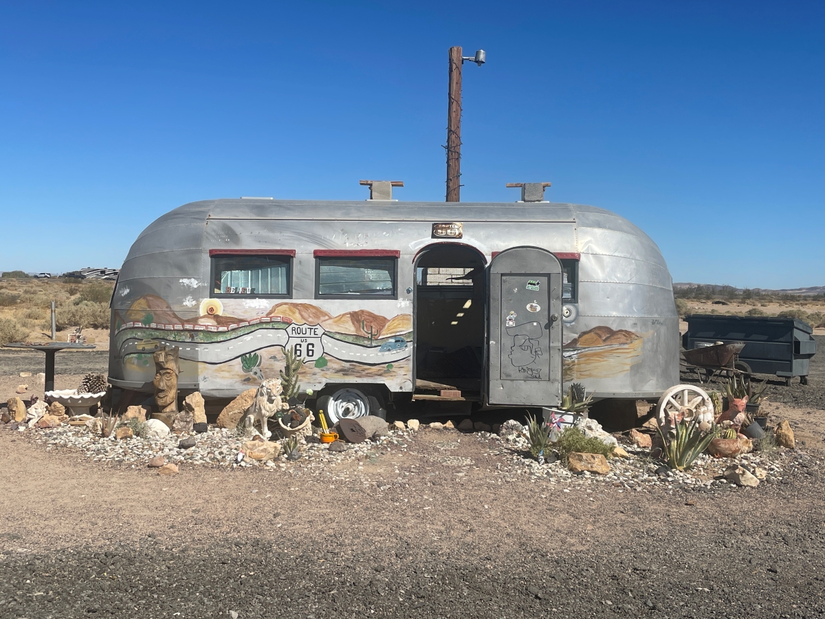 建物の周囲も見て回ると楽しいでしょう。何しろ広いところなので、どこまでがバグダッド・カフェの敷地なのかは判別しがたいのですが、裏庭か駐車場のようなスペースにはバンやトレーラーハウスがいくつか停めてあります。