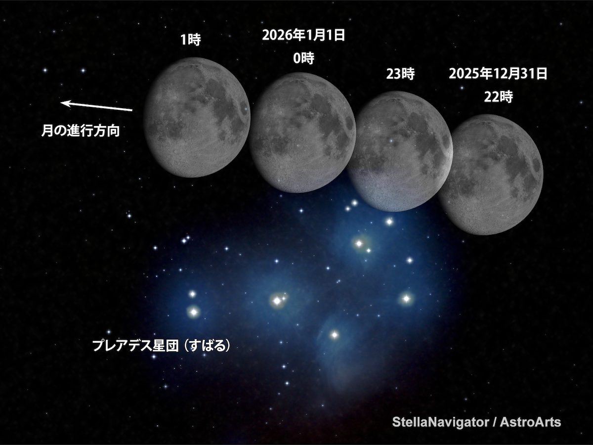 2025年はおうし座のプレアデス星団(すばる)が月によって隠される「食」が4回も起こる当たり年でした。その4回目が大晦日の夜に始まります。