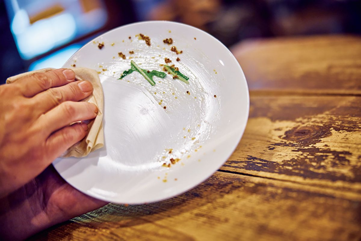 キャンプ場では、食器や調理器具を洗う際、できるだけ少ない水、洗剤の量にし、資源節約と環境への負担を減らしたい。そのため、まずは汚れが多い部分をいらない布などで拭き取るのが基本。