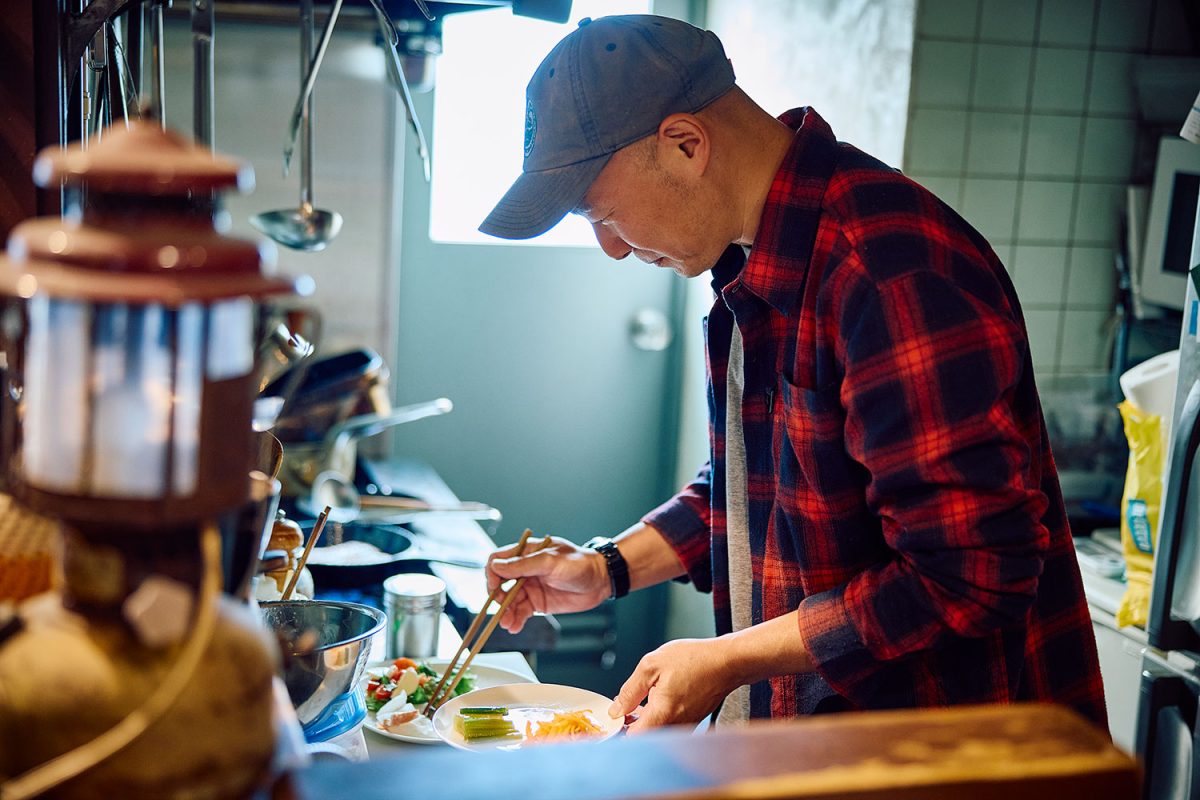 東京水道橋で、アウトドアカフェ「BASE CAMP(ベースキャンプ)」を営む、A-suke(エースケ)さん。フライフィッシングにハンティング、カヤック、MTBと、野外活動の趣味も多彩で、アウトドアイベントにも多数出店している。