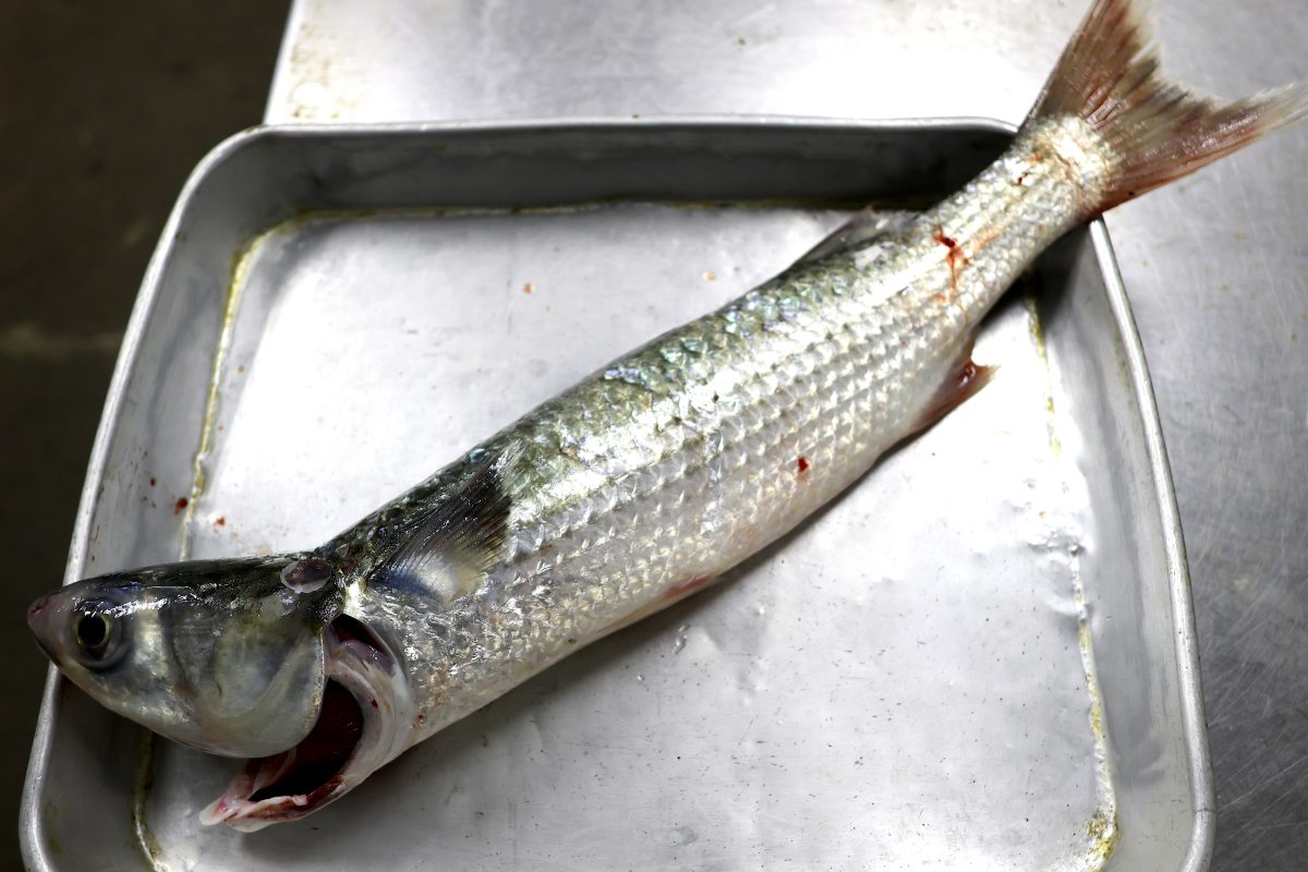 調理前のボラ。(愛知県海部郡蟹江町「湯元館」にて)